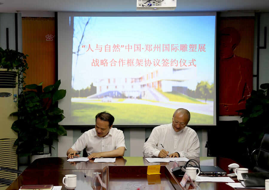 2017年7月24日下午,《“人与自然”中国·郑州国际雕塑展战略合作框架协议》签约仪式在郑州市园林局举行。受郑州市人民政府委托,郑州市园林局党组书记、局长薛永卿与中国雕塑学会会长曾成钢共同签署了上述合作框架协议,以用雕塑艺术的生命力激活中原地域文脉,创建“人与自然”的和谐共生!