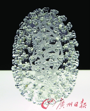 来自英国布里斯托尔的艺术家卢克·杰拉姆最新的雕塑作品美丽、有趣又危险。这些由玻璃制成的雕塑,晶莹剔透,造型精巧,宛若一件件精美的工艺品。然而,近看,你会恍然大悟,原来雕塑貌似“巧夺天工”的造型并非来自艺术构想,而是一系列病毒模型的具象展示,其中包括曾经最致命的天花病毒,人类难以抵御的HIV艾滋病毒,以及如今正在全球肆虐的HINI甲型流感病毒。这些病毒雕塑透明又莫测、易碎又强壮,艺术家卢克·杰拉姆以如此独特的方式引导人们重新思考疾病对人类的影响。