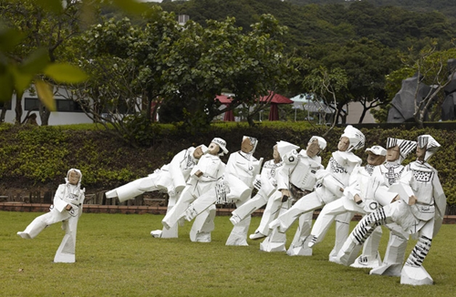 朱铭,1938年生于台湾,为享誉当代国际艺坛之雕塑家,创作主题“乡土系列”、“太极系列”、“人间系列”为其创作历程中之三大主轴。2010年于北京中国美术馆展出“朱铭人间系列雕塑展”,回顾发展迄今已逾三十年之“人间系列”创作。以人间百态为题材,深刻描绘其所见、所感的人间与生活;并以多元材质进行创作及尝试,叙说材质语汇之美。迄今,朱铭仍持续发展以人间为题之作品,在艺术道途上不断自我挑战,并落实“艺术即修行”之创作美学观。